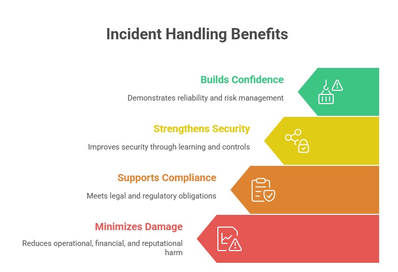 Incident handling combines prompt action with thorough analysis to safeguard assets and enhance the ISMS. Here are the main steps involved in effectively managing incidents.
