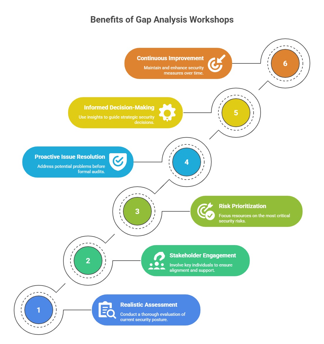 Gap analysis workshops are a vital step in the journey to ISO/IEC 27001 certification and effective ISMS implementation. They provide a structured way for organizations to assess their current information security posture against the requirements of the ISO 27001 standard, identifying discrepancies and planning remediation activities.