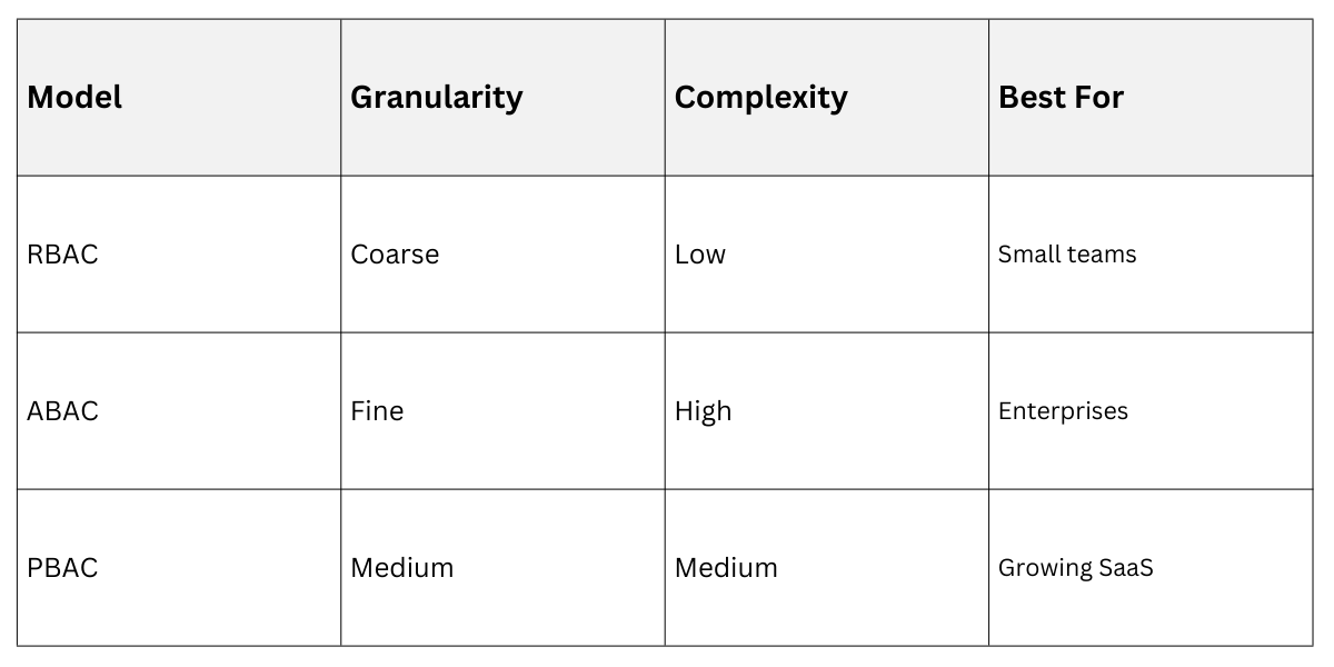 ReBAC grants based on relationships, e.g., "edit if owner" in social apps. Microservices use gateway token propagation or centralized policy services like Cerbos.