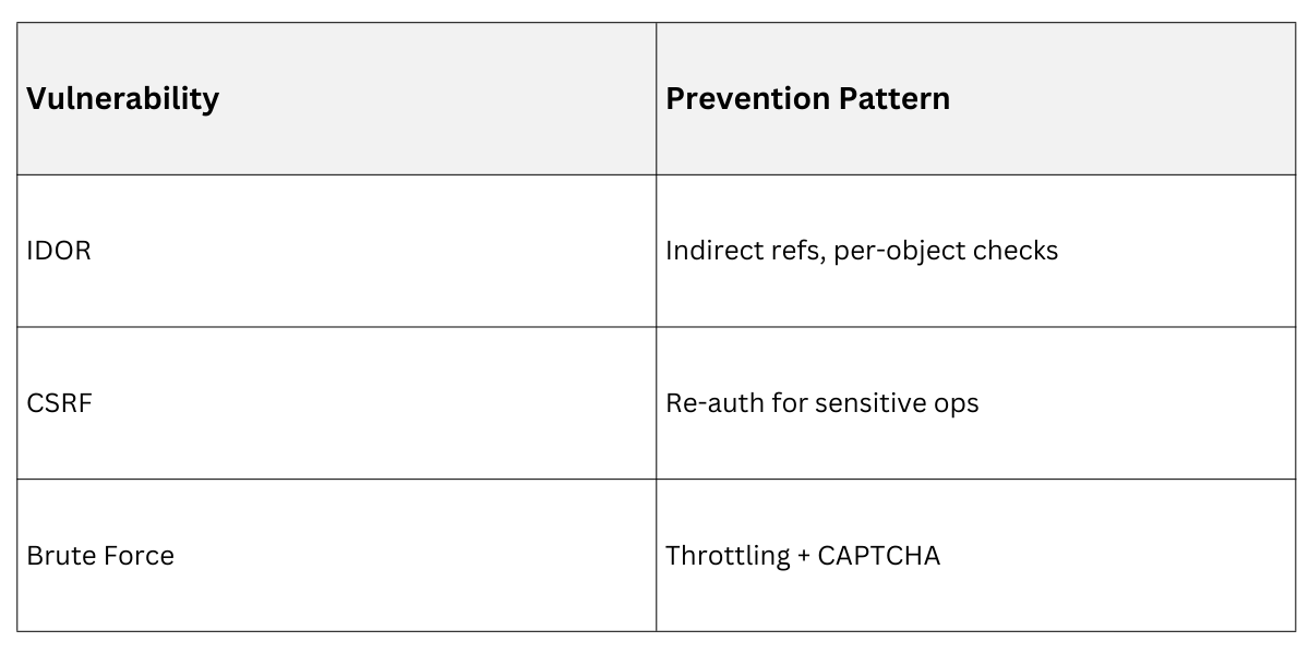 4. Testing: Unit test edge cases, like IDOR via indirect references.