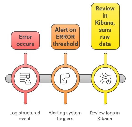 Tie errors/logs to tools like Prometheus for metrics or SIEM for alerts. For compliance (GDPR, PCI-DSS), logs must anonymize PII—use tokenization.