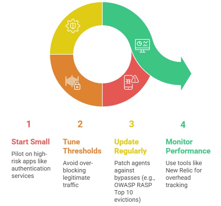 Runtime protection evolves IAST into active defense via Runtime Application Self-Protection (RASP). While IAST observes, RASP blocks exploits in production, embedding security directly in the app.