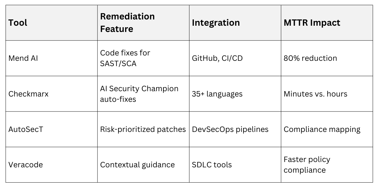 1. Reduces developer time by 80% on fixes, as seen with Mend's ChatGPT-powered suggestions.