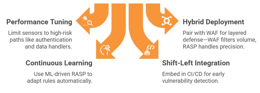While powerful, RASP introduces overhead and requires tuning to avoid disrupting legitimate traffic. Common pitfalls include over-instrumentation slowing apps or misconfigurations exposing gaps.