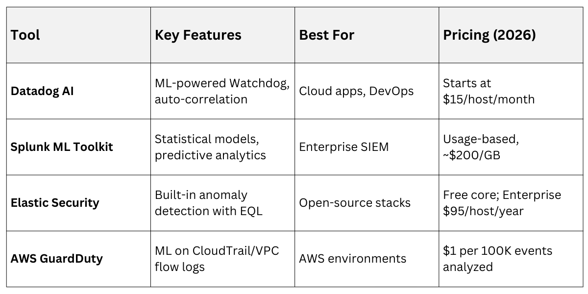 Several mature tools make AI anomaly detection accessible, even for small teams.