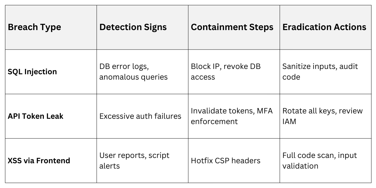 Practical Example: In the 2024 Twilio breach, pre-existing response plans limited damage to scoped API endpoints, unlike reactive firms facing weeks of cleanup.