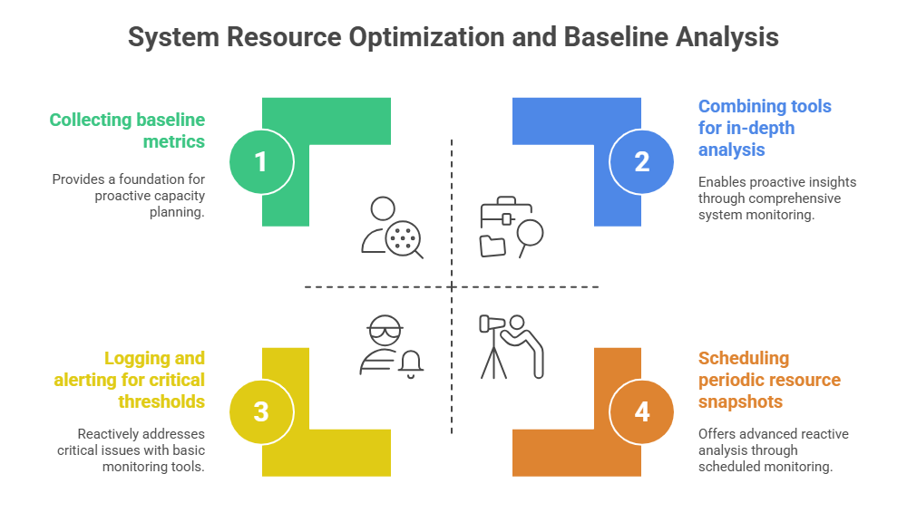 Effective system monitoring and performance analysis are essential for maintaining the health, stability, and efficiency of Linux systems. Monitoring key resources such as memory, CPU, and disk I/O enables administrators to identify bottlenecks, optimize usage, and troubleshoot problems proactively.
