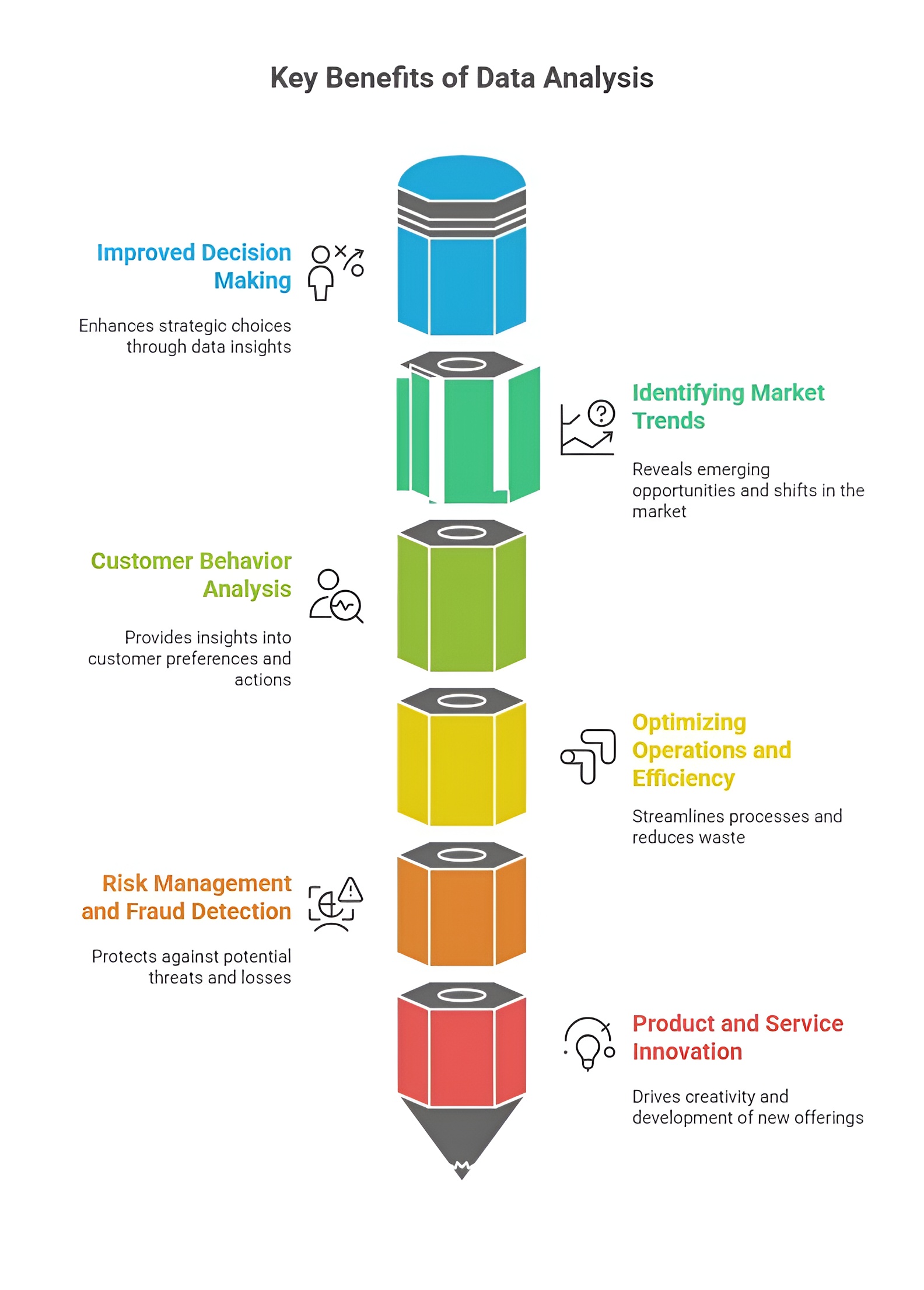 By analyzing operational, financial, or technological data, data analysis helps organizations streamline workflows, optimize resource utilization, and reduce unnecessary costs. Identifying inefficiencies, detecting anomalies, and predicting maintenance requirements prevent downtime and improve productivity. In technology-driven sectors, data analysis allows for performance monitoring, automation, and optimization of algorithms, which reduces computational cost and improves system reliability.