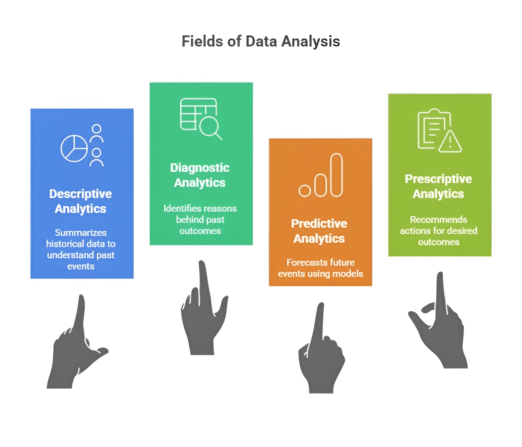 Data Analysis spans multiple fields, each with a unique focus—from describing past data and diagnosing causes to predicting future trends, optimizing decisions, and analyzing unstructured text or visual data. Python, with its rich ecosystem of libraries, supports all these fields by providing tools for data manipulation, visualization, statistical modeling, machine learning, and real-time processing, making it an essential language for modern data-driven applications.