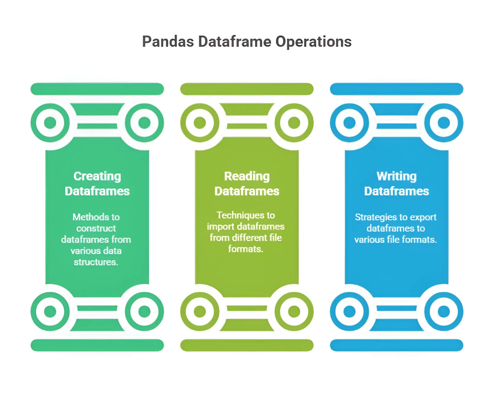 A DataFrame can be created from a 2D NumPy array. Column names can be supplied separately. This approach combines the speed and efficiency of NumPy arrays with Pandas’ labeling and indexing capabilities.
