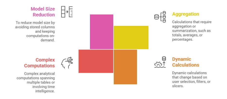 When to Use Calculated ColumnsThe key scenarios listed below explain when calculated columns are the most effective choice.