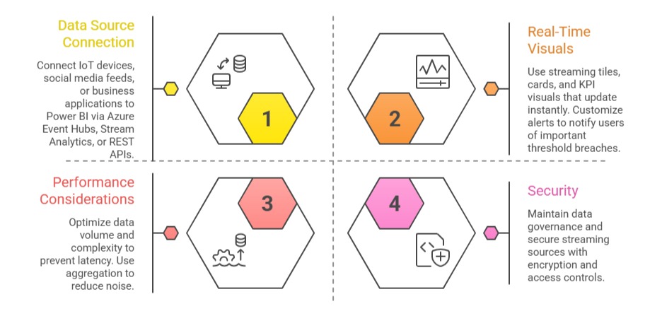 Successful real-time dashboards balance speed, clarity, and security. The main steps below outline how to connect live data sources and design dashboards that update instantly.
