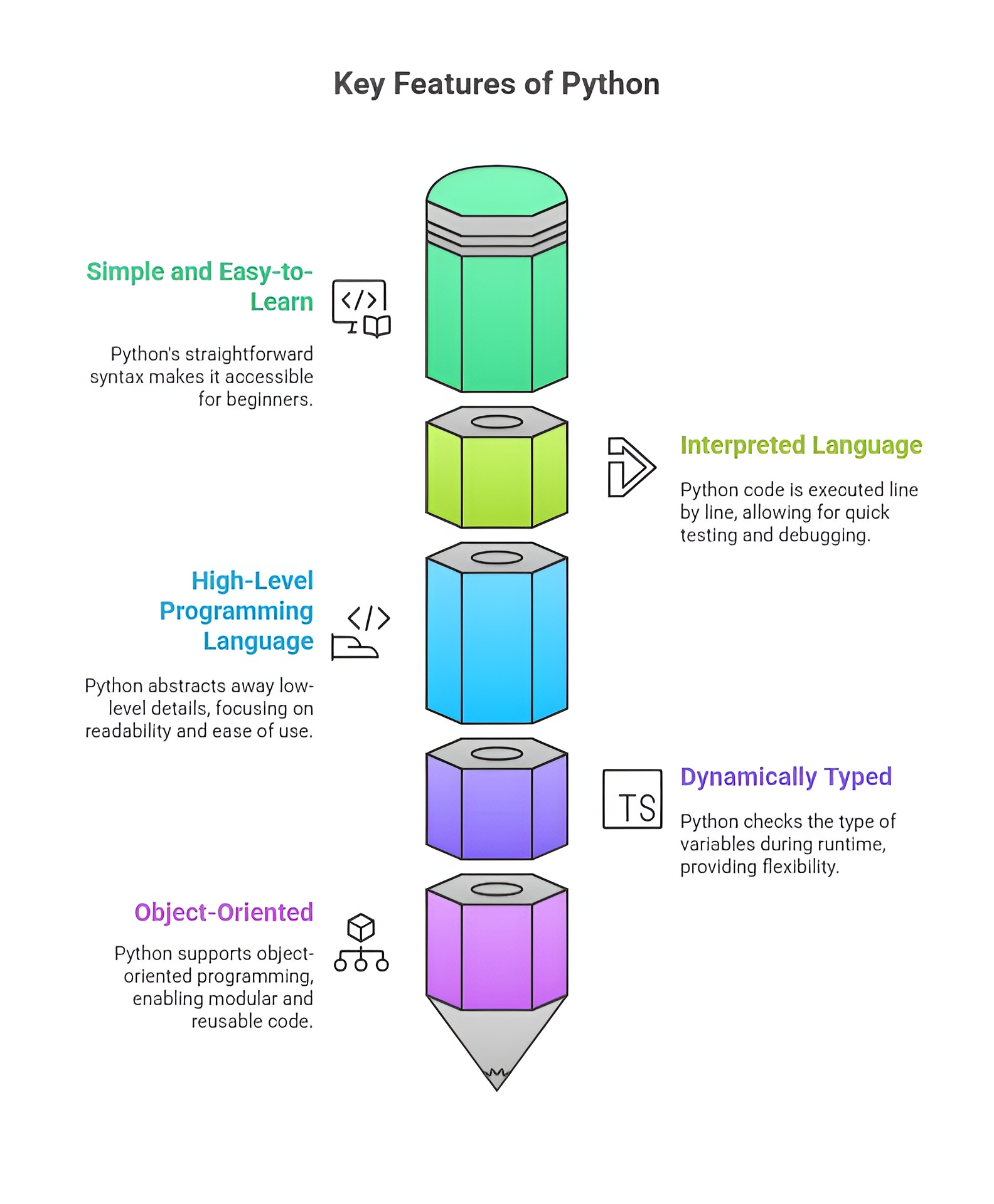 Python’s simple, readable, and intuitive syntax makes it an ideal language for beginners. Unlike low-level languages or complex syntaxes like C++ or Java, Python allows new programmers to focus on understanding programming concepts rather than memorizing complex rules. This importance is especially seen in education, where Python is the first language taught in schools, colleges, and universities, helping students build a strong programming foundation.