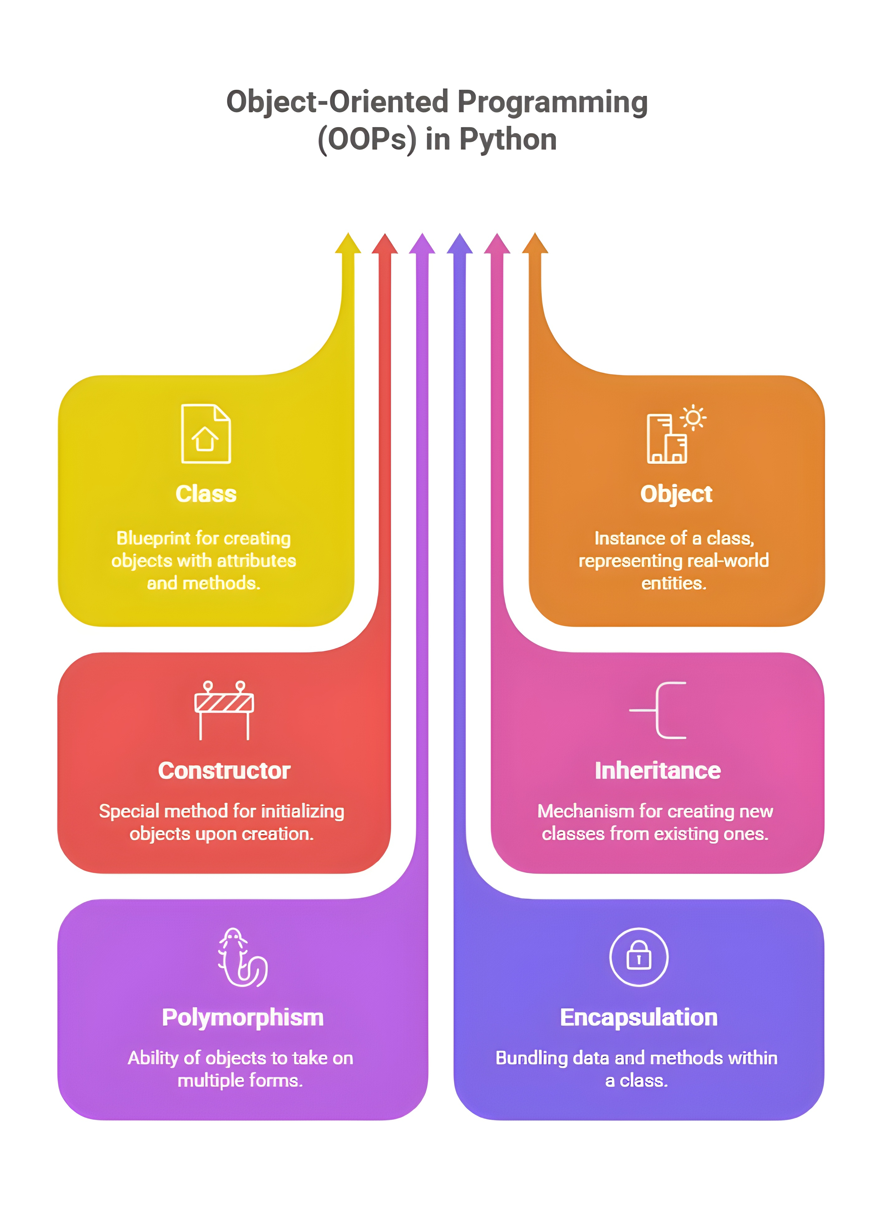 Object-Oriented Programming, commonly called OOPs, is a programming approach in Python that focuses on creating objects rather than writing code as a long sequence of instructions. It is based on the idea of structuring programs around real-world concepts. In OOP, everything is treated as an object that has certain characteristics and behaviors. Characteristics are called attributes (data) and behaviors are called methods (functions). The main purpose of OOP is to make programs more organized, clean, modular, reusable, and easy to maintain.