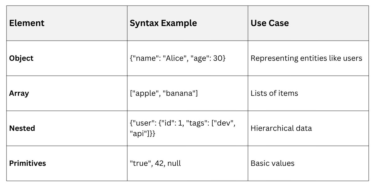 return payload # Auto-serializes to JSONThis outputs: {"id":1,"name":"Alice","skills":["Python","FastAPI","React"],"active":true}.