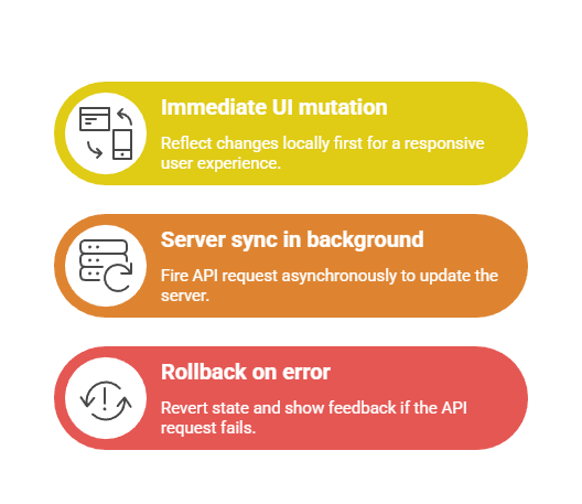 Optimistic updates assume server success and update the UI immediately, rolling back only on failure—ideal for apps with chat features or todo lists. They cut perceived latency from 300ms+ to near-zero, boosting engagement in real-time full-stack experiences.