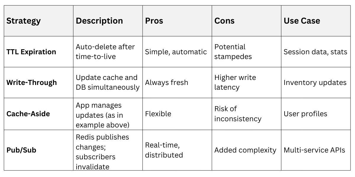 Pro Tip: Combine with Redis Streams (new in 5.x, enhanced in 7.x) for event-driven invalidation.