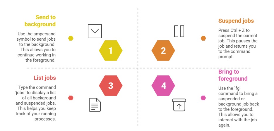 Users can manage running processes directly from the shell:
