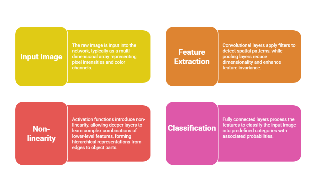 The following points outline the process through which CNNs convert input images into final outputs. This workflow reveals the layered transformation that drives deep visual understanding.