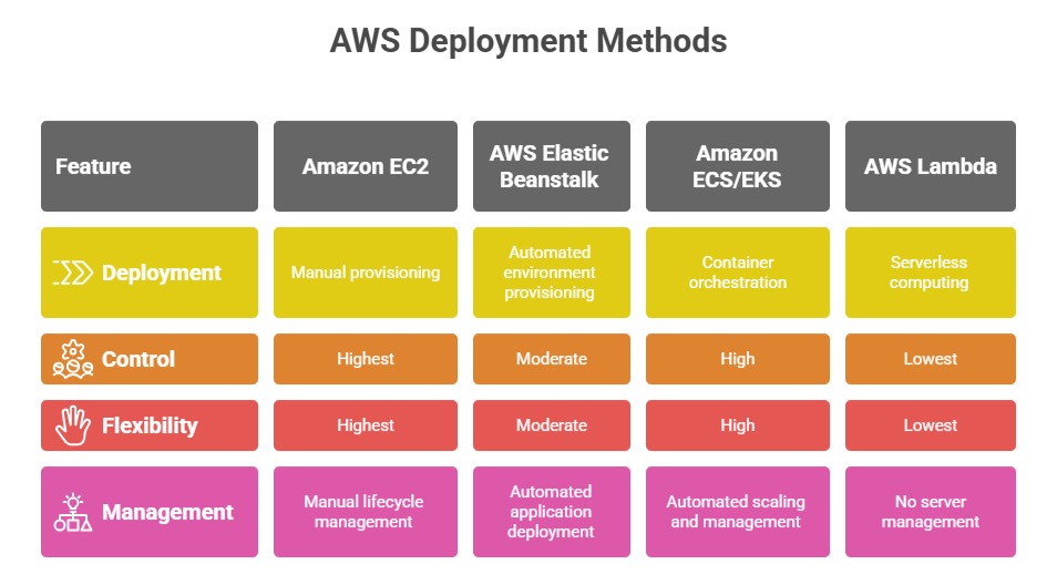 AWS offers multiple services like EC2, Elastic Beanstalk, and ECS that simplify the process for different types of applications. Understanding foundational deployment workflows helps users build, test, and launch applications in the cloud effectively.