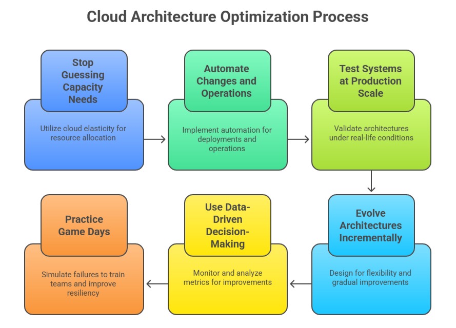 5. Cost Optimization: Guides designing systems to deliver business value while minimizing unnecessary expenses. It promotes implementing cost-effective resources, controlling consumption, and adopting financial best practices.