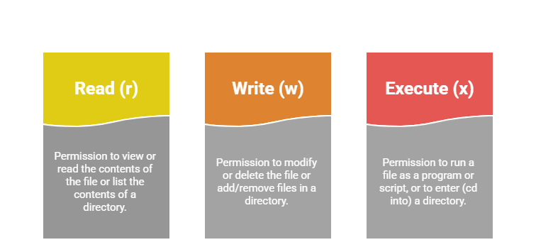 Every file and directory in Linux is protected by a set of permission rules. Following are the three basic permissions used to manage access.