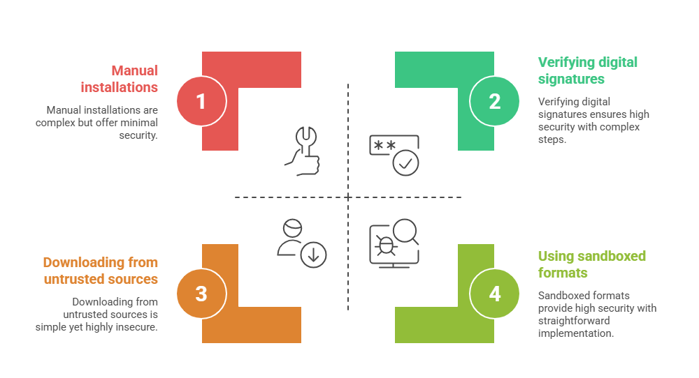 sudo snap install package_nameFlatpak: Focuses on sandboxing and compatibility.