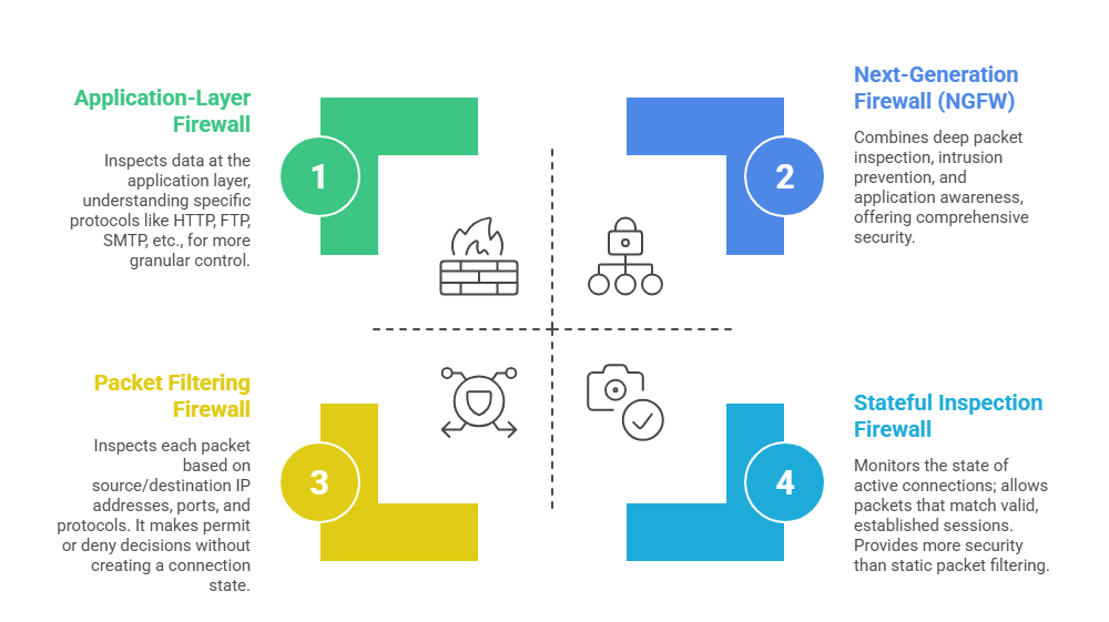 2. Packet Filtering by Firewall: The firewall inspects each packet’s header and compares it against security rules. Allowed packets proceed, while blocked packets are dropped or quarantined.