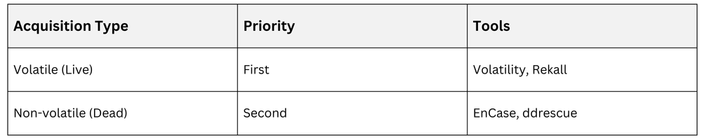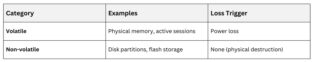 Note: Volatility classification follows a hierarchy, dictating acquisition order to preserve time-sensitive clues.