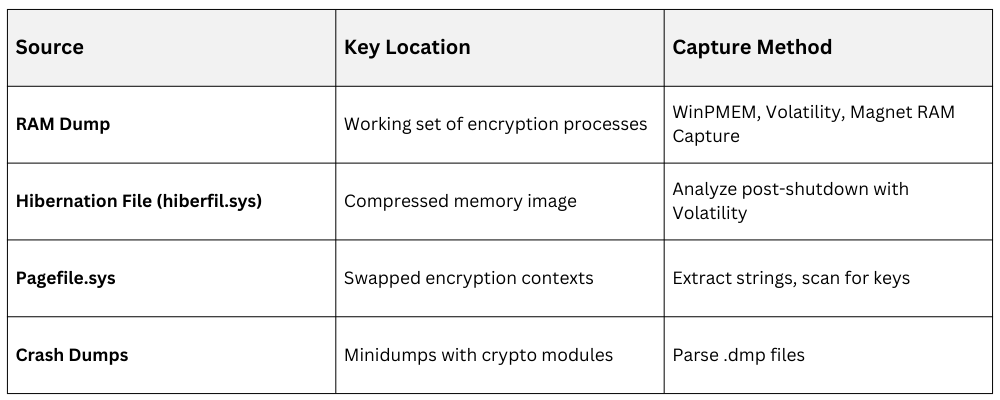 Note: Live acquisition essential; shutdown wipes keys instantly.
