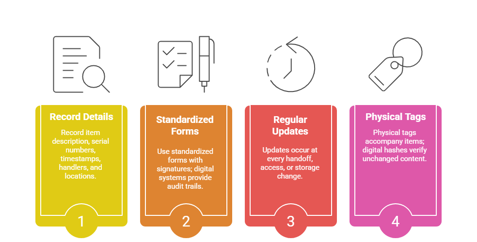 Chain of custody documents every transition of evidence, establishing accountability and preventing challenges to authenticity.