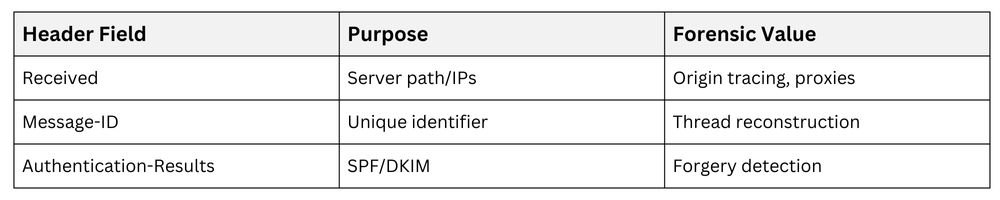 In phishing: Headers reveal spoofed domains; Teams artifacts show response coordination.