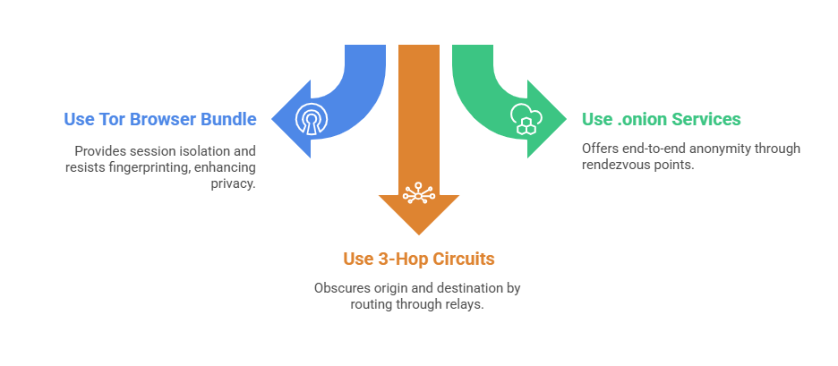 Tor (The Onion Router) routes traffic through volunteer relays using layered encryption, creating circuits that obscure origin and destination.
