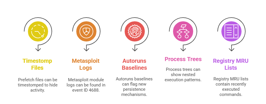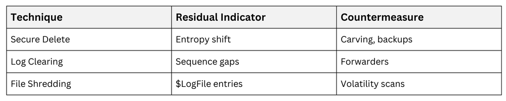 Investigators employ multi-source validation, anomaly detection, and residual trace analysis to uncover these tactics, ensuring evidence reliability despite adversary interference.
