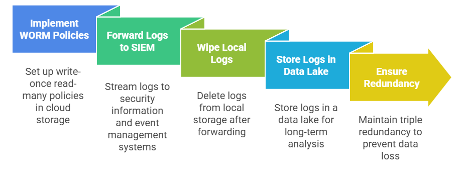 These approaches emphasize redundancy, immutability, proactive capture, and multi-layered validation to preserve chain of custody despite wiping, encryption, or tampering.