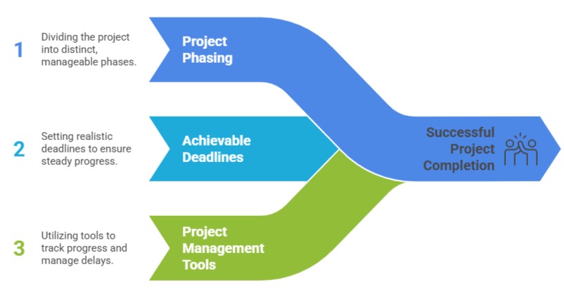 Additionally, realistic timelines, milestones, and accountability frameworks help maintain focus, manage expectations, and drive project completion.