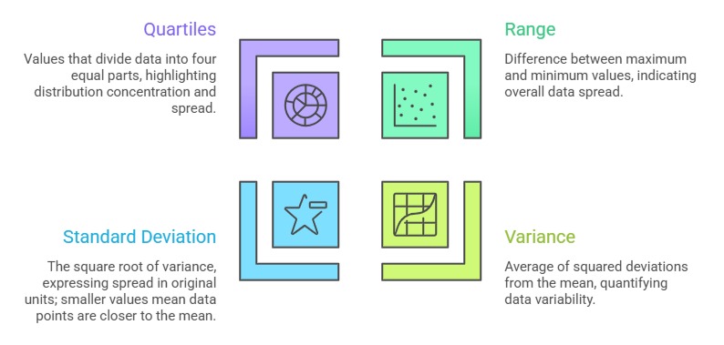 These measures help businesses assess consistency, risk, or variability—such as variability in sales or product quality.
