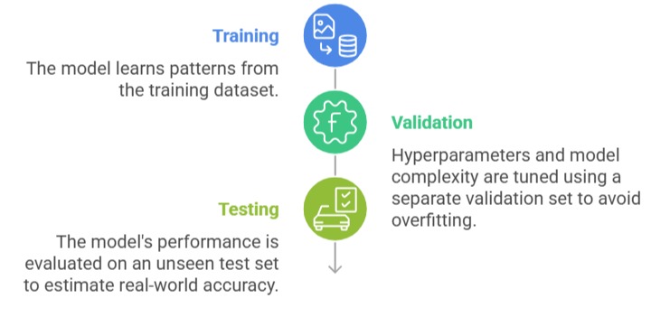 Building an effective predictive model involves multiple stages, each crucial for performance and accuracy. The points below summarize the lifecycle from training to validation to testing.