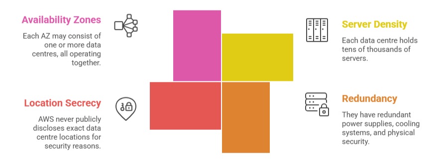 The physical buildings where AWS hardware actually lives. You do not interact with individual data centres directly on AWS. They sit inside AZs and are managed entirely by AWS. However, it is worth knowing what they look like: