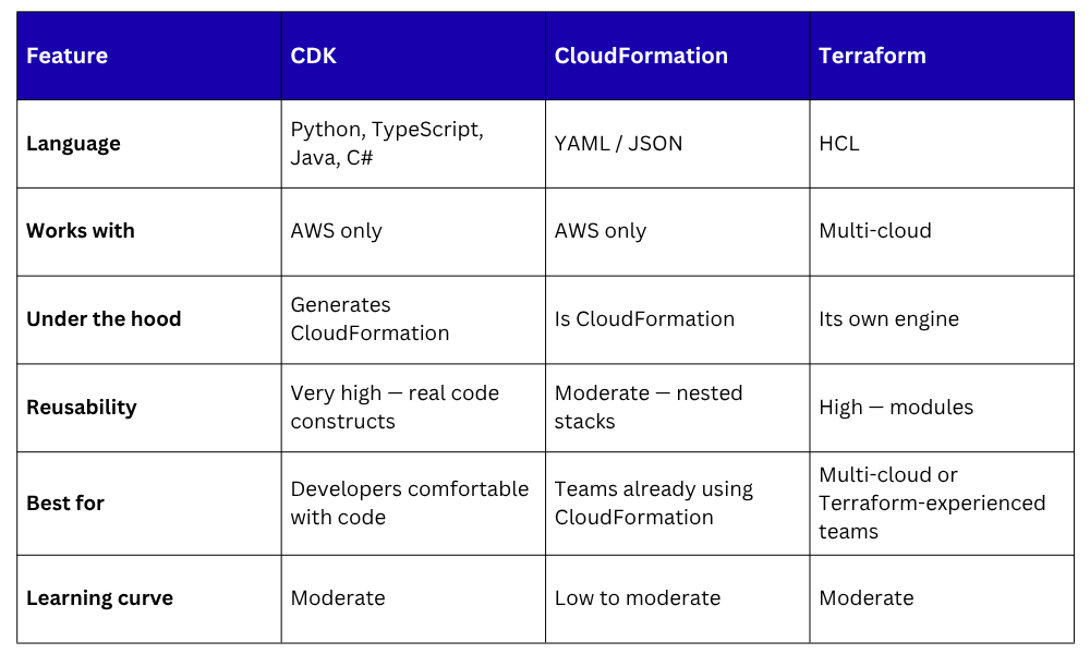 For developers who are more comfortable writing code than configuration files, CDK feels natural and powerful.