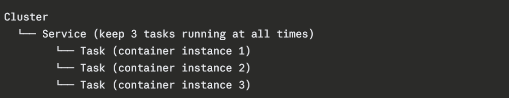 1. Cluster: A cluster is the logical boundary for your ECS resources — a group of infrastructure where your containers run. Every ECS deployment belongs to a cluster. You can have separate clusters for dev, staging, and production.