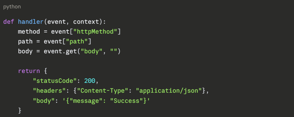 A Lambda function responding to an API Gateway request: