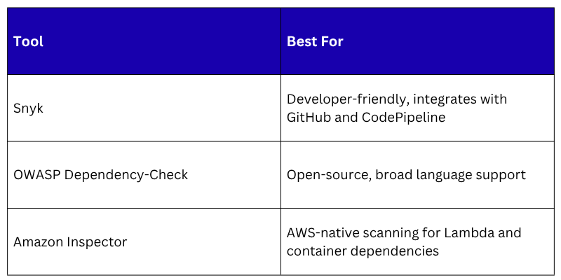 Modern applications depend heavily on open-source libraries. SCA scans your dependency files — requirements.txt, package.json, pom.xml — against databases of known vulnerabilities.