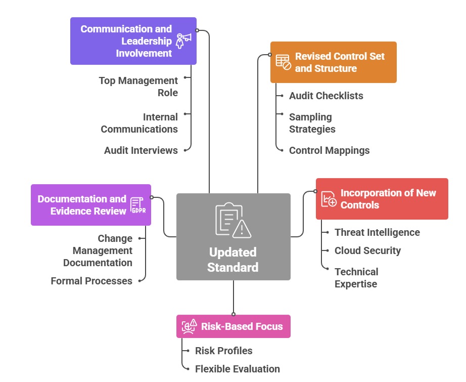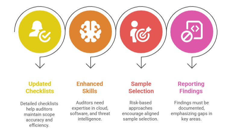 To align with the new structure and controls, auditors must adapt their techniques, documentation, and testing methods. The following points outline the main impacts on audit execution.