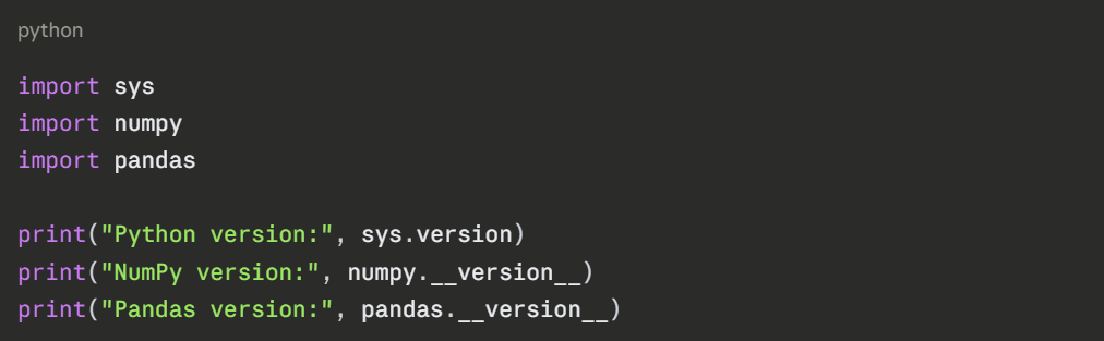 Once everything is set up, open Jupyter Notebook or VS Code and run the following to confirm Python and key libraries are installed correctly: