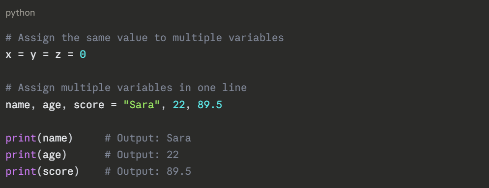 Python allows you to assign values in flexible ways to keep your code clean:
