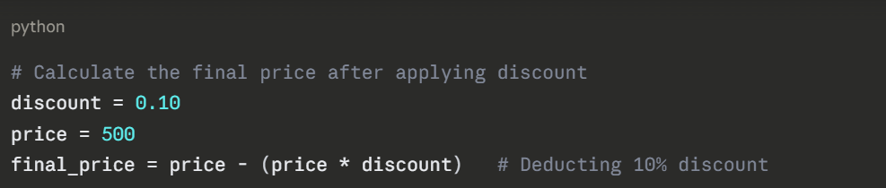 Comments explain the purpose of code. They are ignored by Python but are invaluable for readers. Use them wisely, not to state the obvious, but to explain the why.