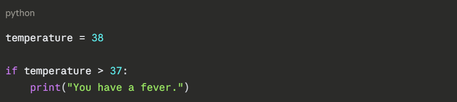 The if statement checks a condition. If the condition is True, the indented block of code beneath it runs. If it is False, Python skips it.