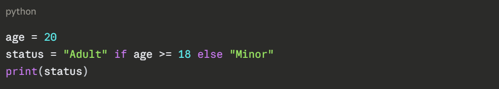 For simple conditions, Python allows a compact one-line version called a ternary expression.