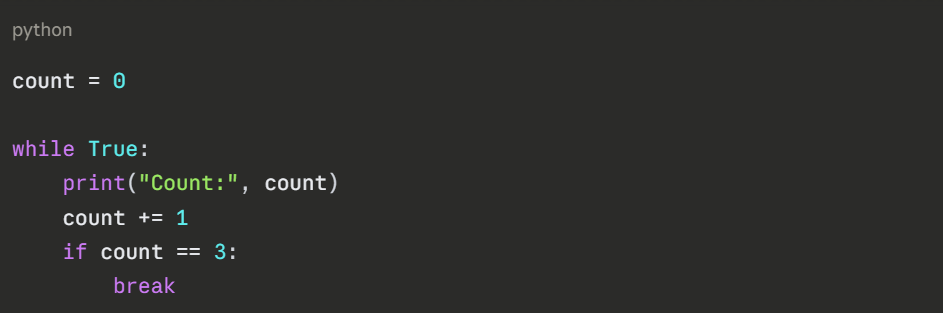 Here, break is what prevents the infinite while True loop from running forever.